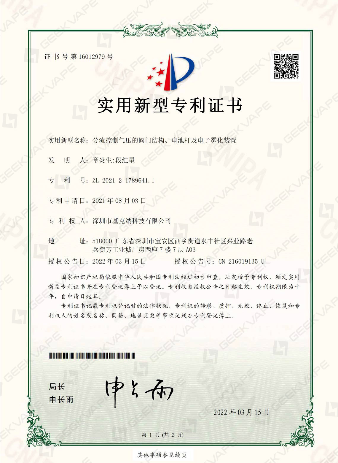 团队成员拥有10余年成熟的雾化研发实力与经验,目前已申请专利200余项,各类商标60余个。外观设计专利46%,实用新型专利34%,发明专利20%。